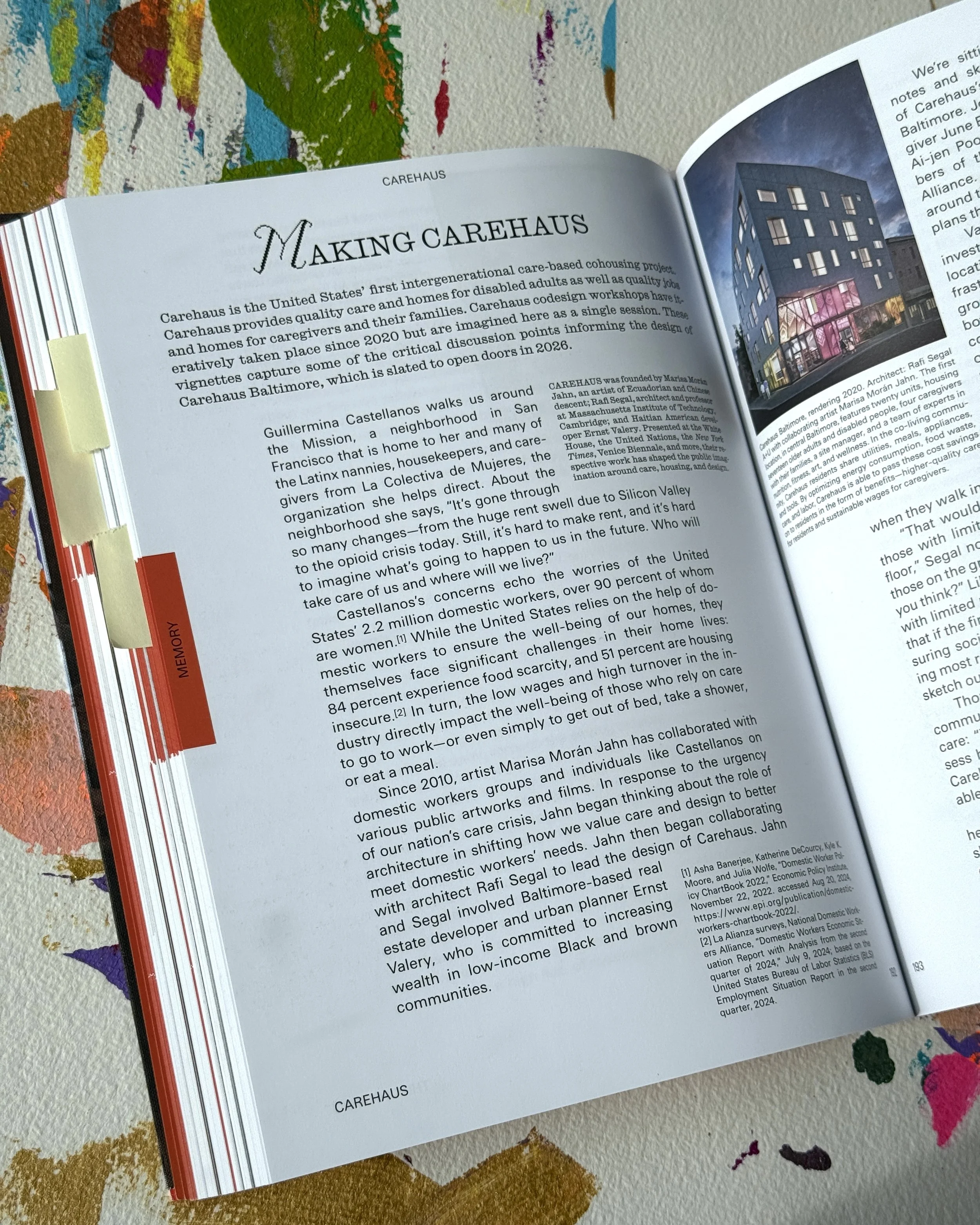 What does it mean to “make home”? Published by MIT Press and Cooper Hewitt/Smithsonian in conjunction with the Design Triennial, Making Home explores the contradictions — dis/comfort, dis/connection, and more. As a second-gen immigrant with family dis/placed around the world and a lifelong sense of terrestrial disjunction, I found a lot of comfort in the diverse writing offered by the thinkers, artists, and designers. Peek into “Memory” to find my essay-conversation w/ architect Rafi Segal, domestic worker advocate Guillermina Castellanos, developer Ernst Valery and others about the making of Carehaus, the U.S.’s first intergenerational care-based, co-housing project that builds on my decade-long collaboration with the National Domestic Workers Alliance.